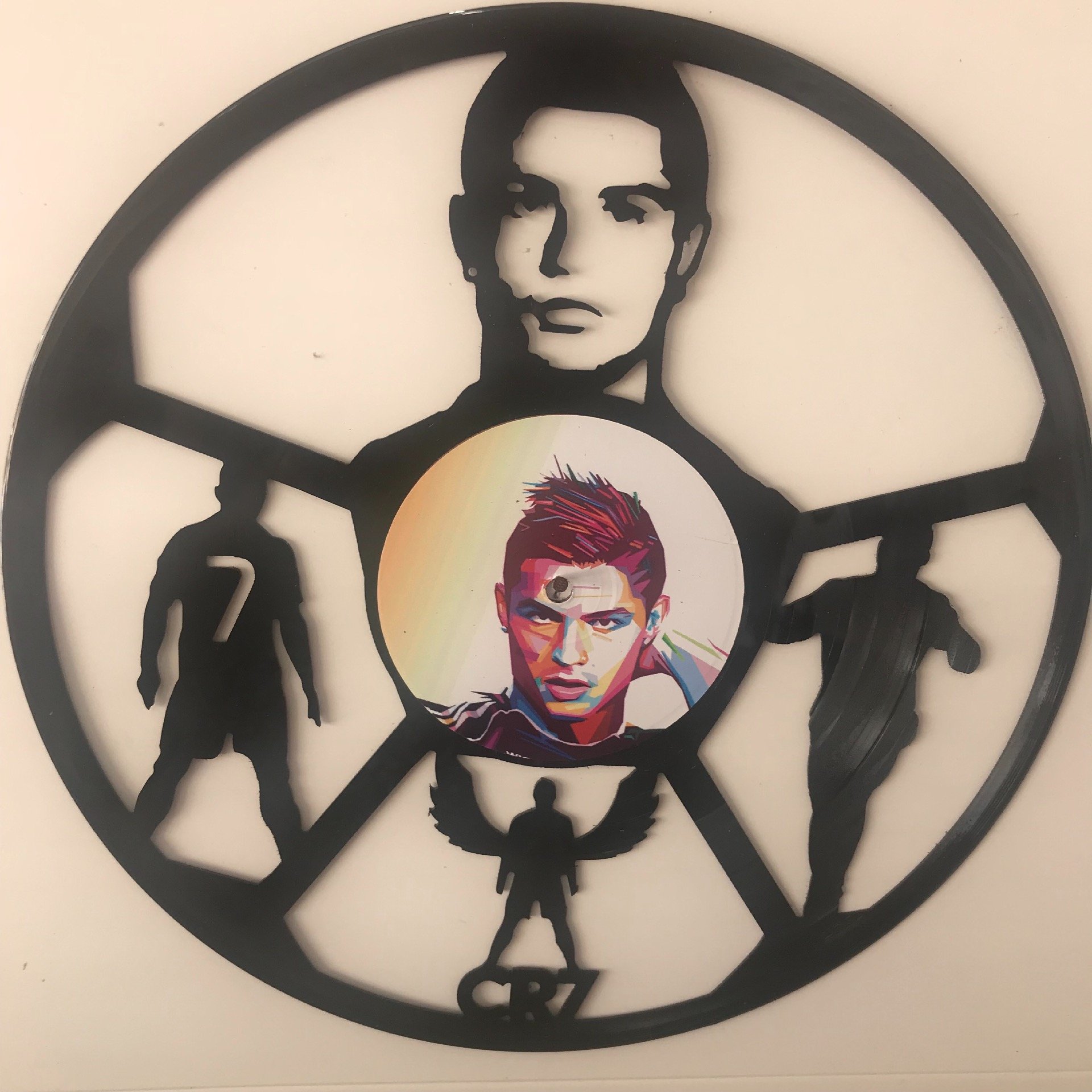 Vinilo representativo de Cristiano Ronaldo, (Funchal, Madeira, 5 de febrero de 1985), es un futbolista portugués que juega como delantero en la Juventus de Turín de la Serie A de Italia y en la selección de Portugal, de la que es capitán.